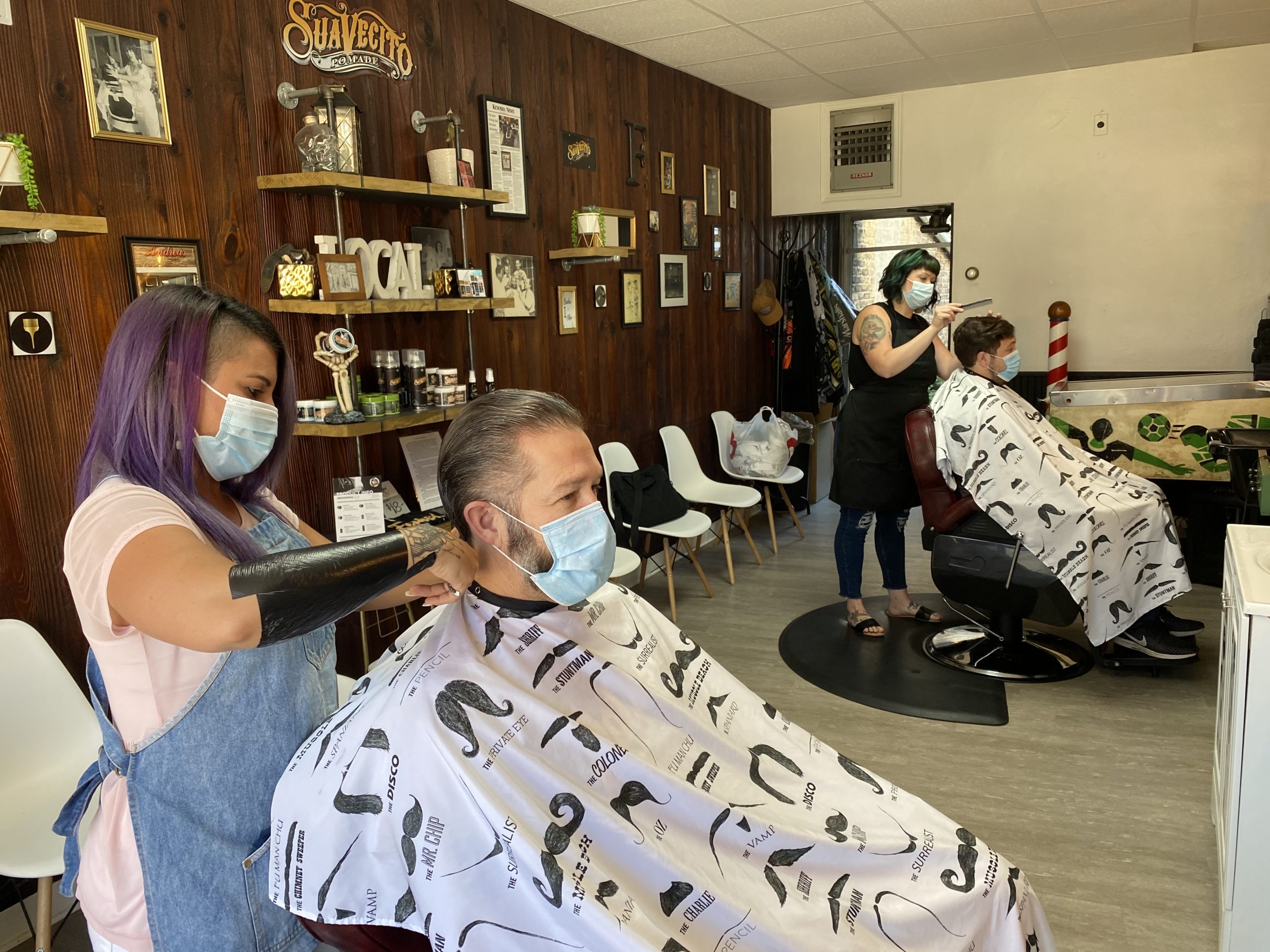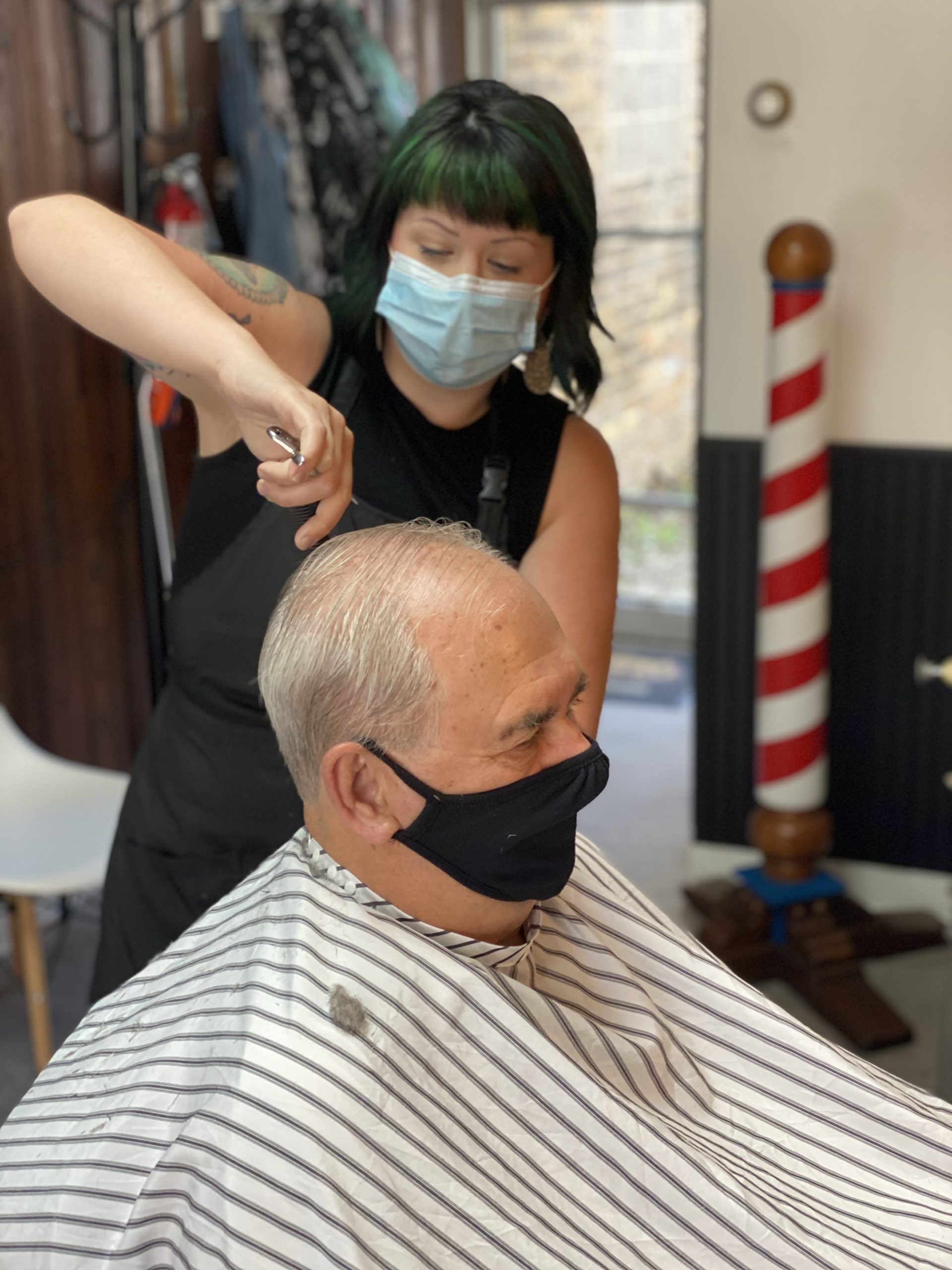 A. This industry has always been very sanitary so really just keeping up with it. Making sure ever customer gets a clean cape, sanitizing EVERYTHING after each customer, washing our hands in between. We take the laundry home every night to wash.